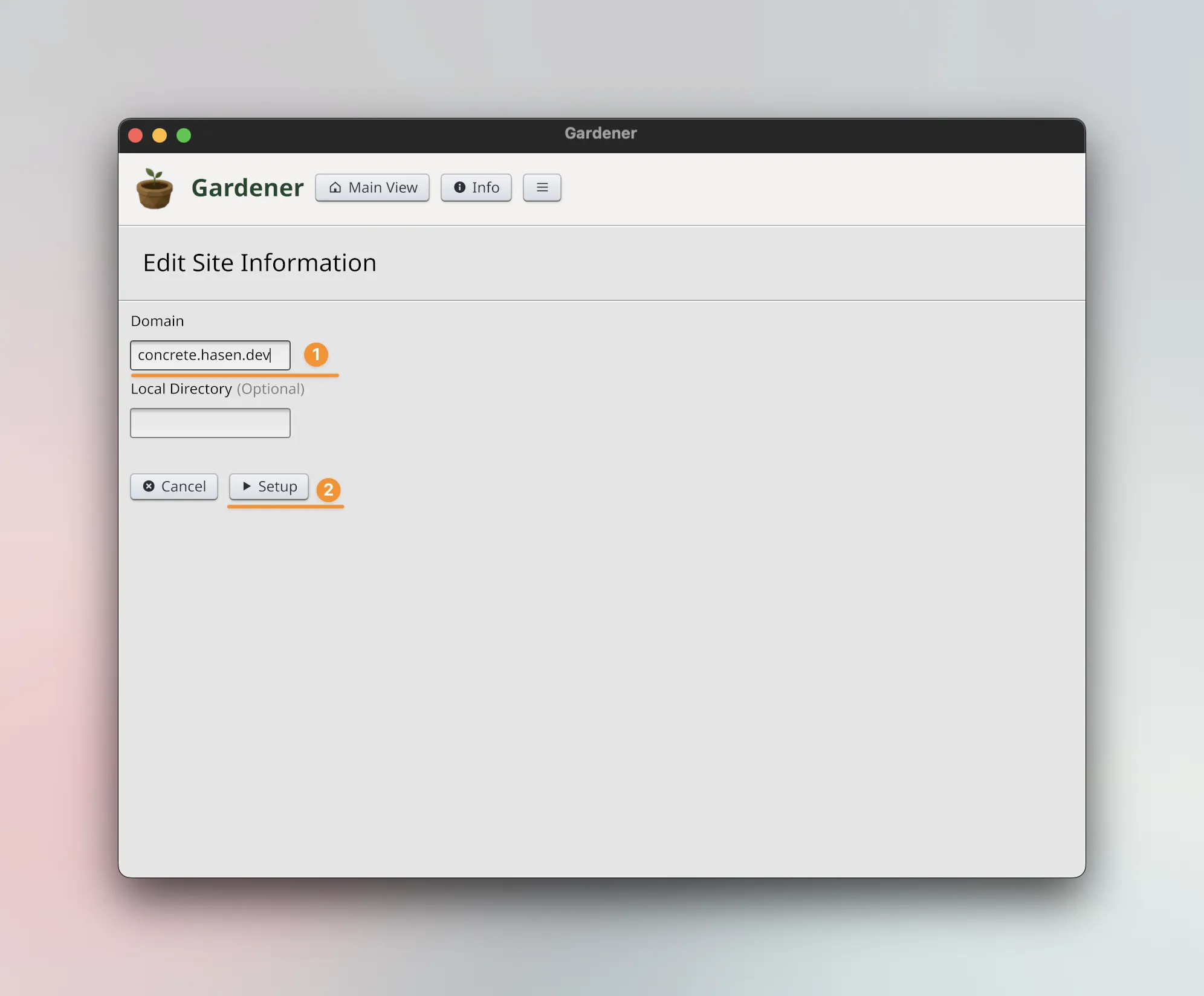 The directory is optional; if you do not specify it, Gardener will use ~/sprouts/<domain> by default.