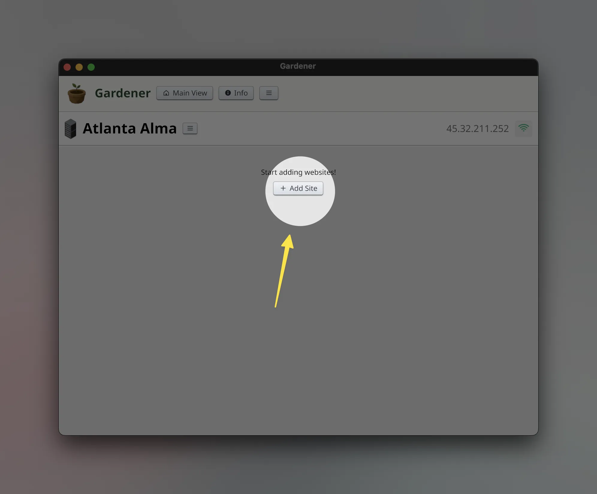 For a freshly setup server, there will be a prominent "Add Site" button: