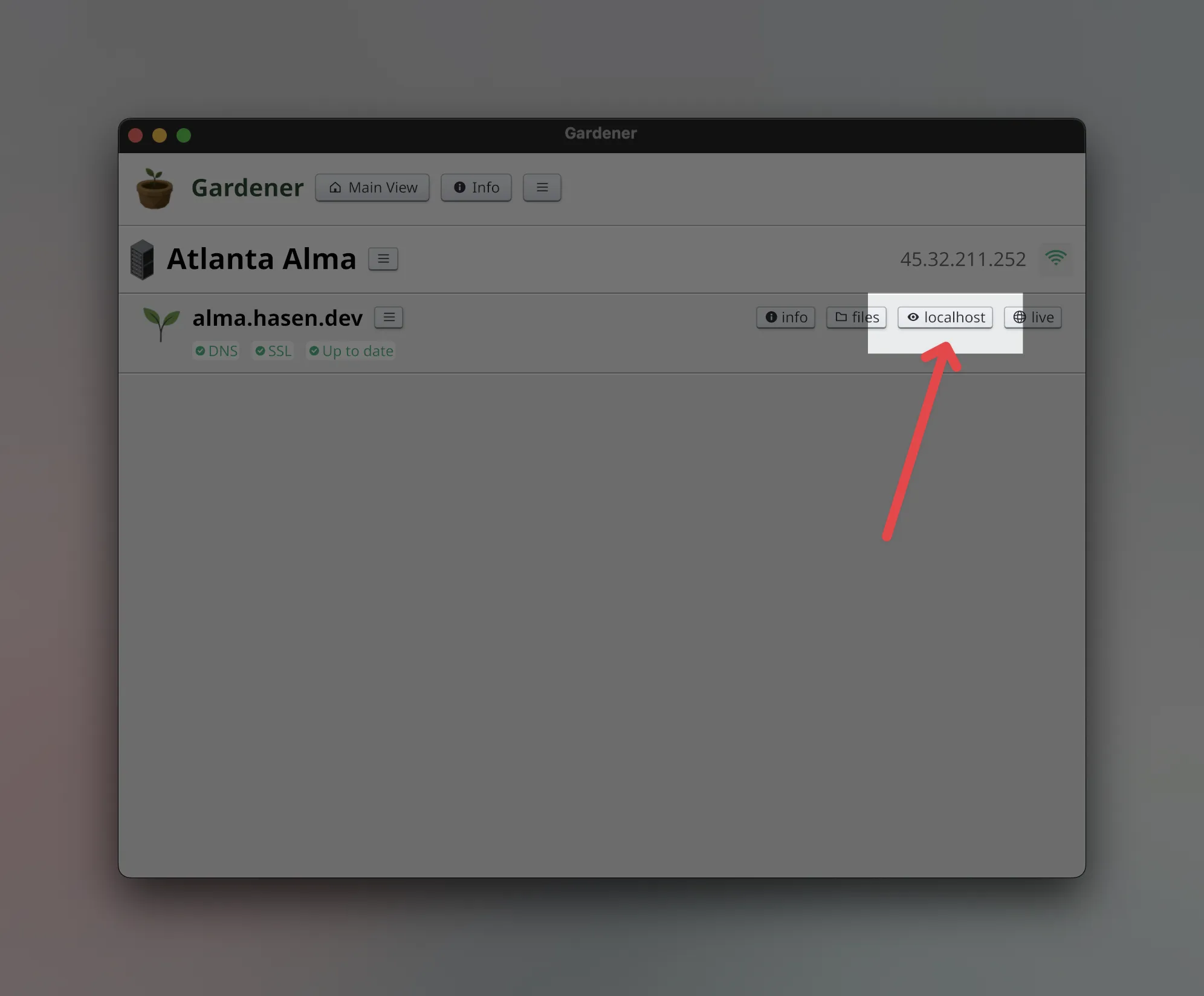 Note: the port number is chosen randomly. If you close Gardener and open it again, it is very likely that it will choose another port number.